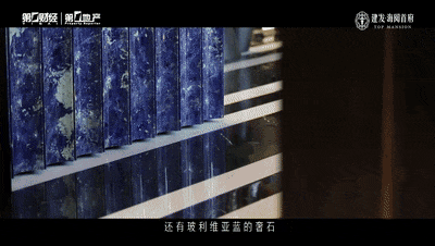 同时采用玻利维亚蓝奢石去做了欢迎台、吧台等。要晓得这种奢石的荒料的价钱都常高贵的,并且世界上存量也很是少,市道上一般只是用小料去拼接。像建发·海阅首府如许整块加工的做法,实的能够称之为不吝成本。