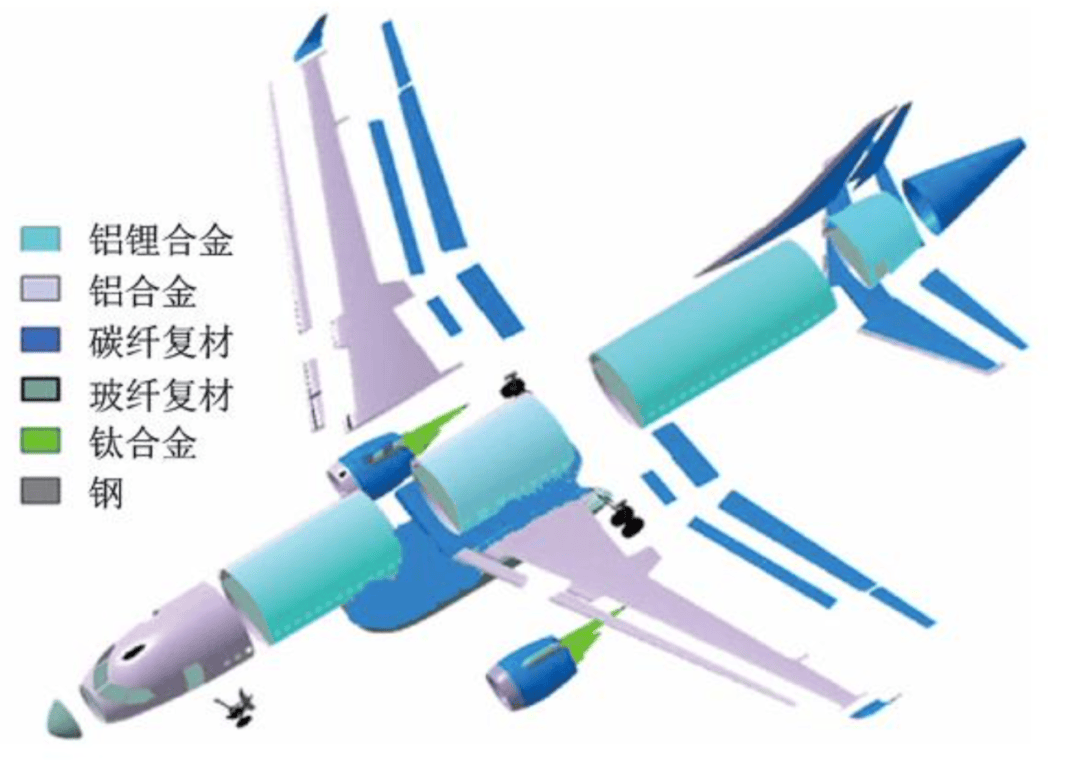 铝材料仍是次要用料,复合材料比例不竭提拔。C919的材料选用充实考虑轻量化、高靠得住、长命命、高效能和绿色环保等机能,兼顾了成熟性和先辈性。各部件选材方面,C919的机头、大翼、缝翼、进气道等布局采用了铝合金材料;前机身和中、后机身采用了第三代铝锂合金,雷达罩、短舱、舵面、尾翼、机死后压力隔框、机身尾椎、小翼、翼身整流罩等布局采用了复合材料。复合材料正在飞机全体布局分量中所占的比沉达到了12%。这也是我国平易近用航空制制业正在从承载布局、高温区域以及增压区域内初次使用了复合材料,为复合材料正在商用航空制制业中的进一步推广和使用堆集了贵重的工程实践经验。