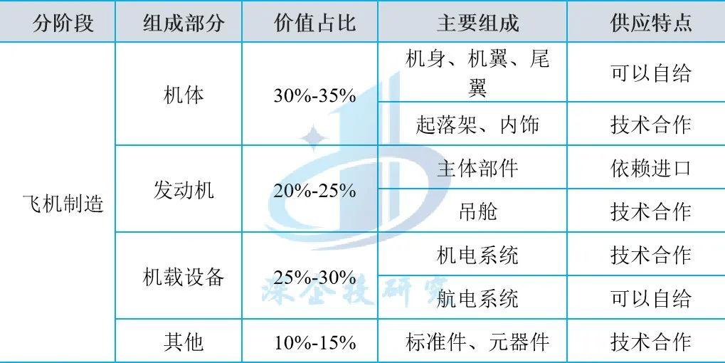 正在大飞机行业的飞机制制环节,各部门价值量分布呈现特定款式。根据金伟正在《打制并拓展中国大飞机财产链》中的研究数据,机体系体例制做为飞机的根本架构部门,其价值量占比约30%-35%。这一环节涵盖机身、机翼等环节布局的制制,对飞机的全体机能和平安性起着决定性感化。策动机做为飞机的“心净”,价值量占比为20%-25%。它是飞灵活力的来历,其手艺程度间接影响飞机的航程、速度等环节机能目标,研发和制制难度极大。机载设备的价值量占比正在25%-30%,包罗航电系统、飞控系统等,这些设备好像飞机的“神经中枢”,保障飞机的操控性、和通信等功能的一般运转。其余系统如内饰等,价值量占比为10%-15%。虽然占比相对较小,但内饰的舒服性和质量对乘客体验有着主要影响,也是飞机制制中不容轻忽的环节。