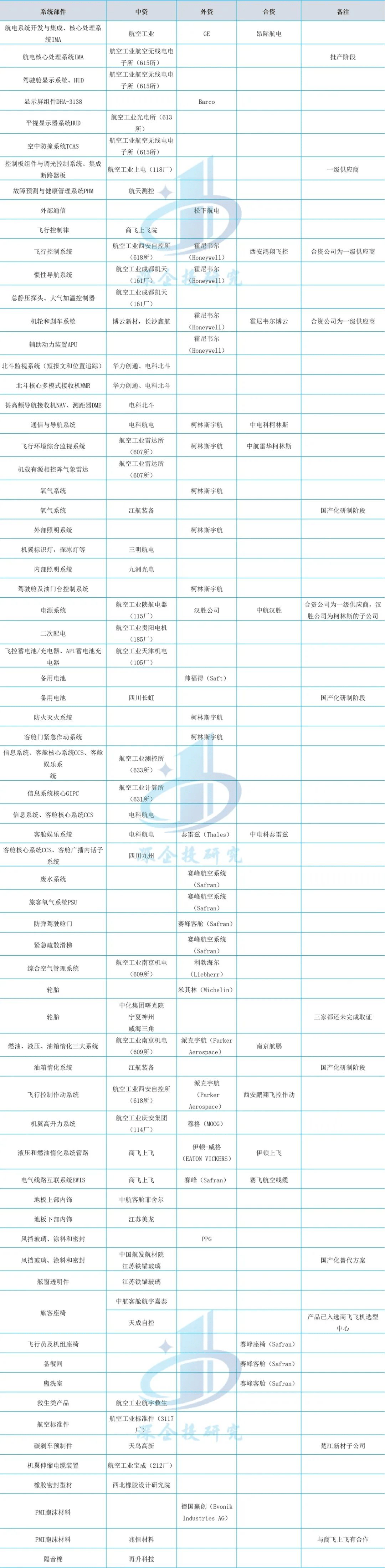 C919采用支流客机制制国际通行的“从制制商-供应商”模式。“从供模式”是当宿世界次要飞机制制商采纳的支流体例,由于航空制制业越来越集中,研发成本越来越大,以致各大垄断寡头为了分管风险,正在节制好焦点手艺的前提下,将手艺研发和出产制制进行了全球化分工,从而分摊研制费用,正在全球范畴内选择成本凹地降低制形成本,同时也取次要市场国度构成分工协做,降低市场准入妨碍。波音、空客正在新一代平易近机上都采纳了“从-供”模式。C919的研制亦采用了“从制制商-供应商”模式:此中,1)C919机体部件次要由国内供应商承制,包罗雷达罩、机头、机身、机翼等。2)策动机及次要机载系统,则按照客户需求,由国外供应商同国内相关企业开展合伙或合做配合完成。