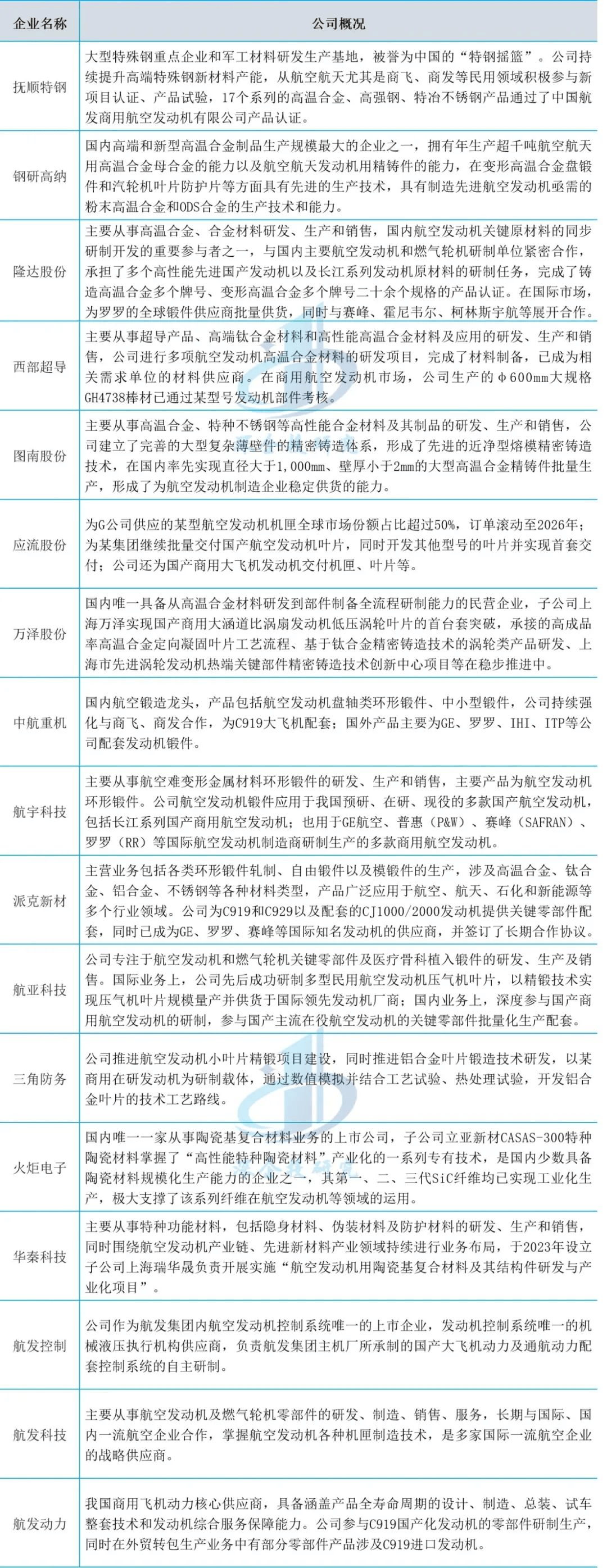 跟着国产大飞机规模化交付,我国国内航空策动机范畴公司将充实受益。航空策动机财产链涵盖从原材料供应到制制、使用的全过程。上逛包罗高温合金、钛合金、陶瓷基复合材料等特种材料及涡轮叶片等环节零部件,依赖细密锻制等高端手艺。中逛为策动机的设想、研发取制制,是财产链的焦点部门。下逛是策动机的使用和办事,涵盖了商用航空公司、军用和平易近用等多个范畴。跟着C919等国产大飞机进入批量化、规模化出产交付阶段,LEAP系列策动机的外贸转包需求无望添加,同时CJ-1000A策动机的研制也将鞭策国内航空策动机财产链企业受益。