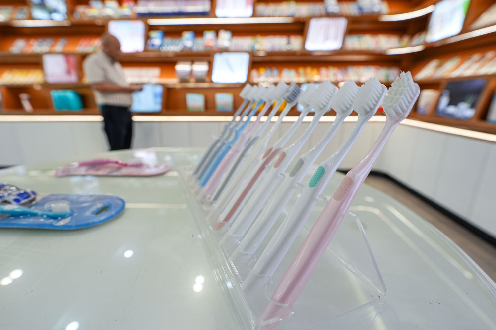 南京1月16日电(记者邱冰清、毛俊)迪拜高端酒店的牙刷产自哪里?我国极地科考船上员工用什么牙刷?牙刷还能当口腔检测仪器?你能想象吗,这些牙刷,都产国江苏省扬州市一个叫杭集的小镇。杭集镇现正在是全球最大的牙刷出产,年产牙刷75亿支,产值达到130多亿元,占了国内市场的八成以上,并远销全球80多个国度和地域,全球每3支牙刷,就有一支产自这里。