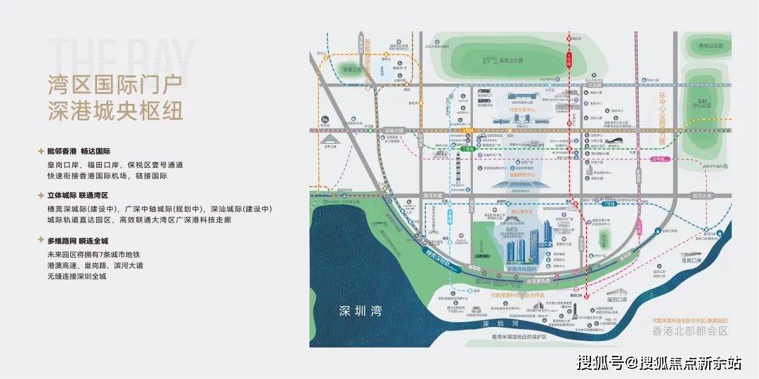 3轨道:深广中轴城际(规划中)、穗莞深城际(扶植中)、港铁北环线港口:福田港口、皇岗港口、福邻港口(规划中)?。